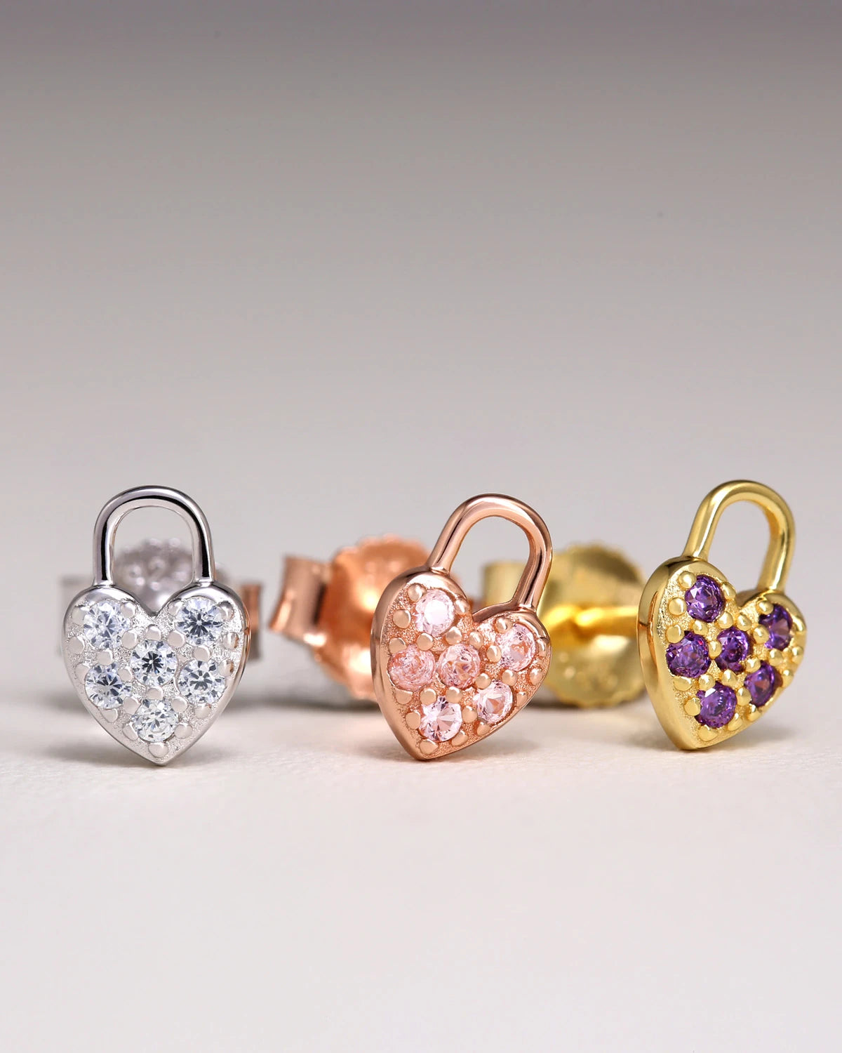 Aurélie Heart Lock CZ Diamond Ear Studs
